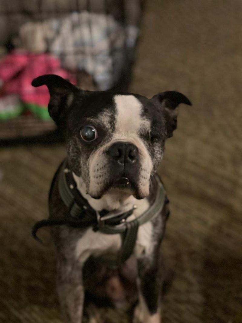 The Man The Myth The Legend. Blue is Blind in one eye and can not see out the other. Blue lost his eye in a fight with a young Pit Bull back when Blue himself was young. He has never cried or complained about his handicap, instead he takes life head on. Memorable quote “ If your not the lead dog the view never changes “