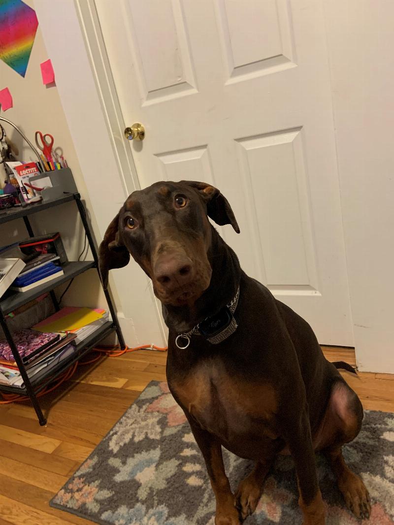 Zaia is a pure breed Doberman Pinscher. She is a big baby who believes she is a lapdog. She is very helpful not only to myslef but my husband and son as she calms all of our anxiety