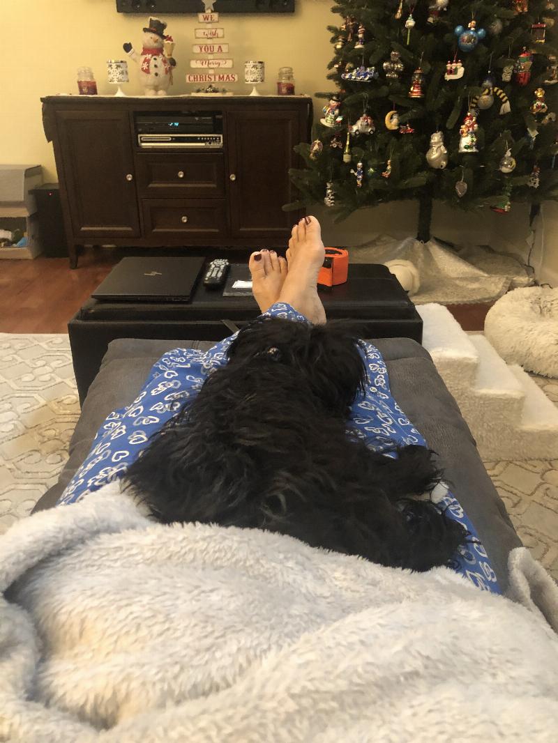 I have so many pictures just like this. She is always laying on my lap. She waits for me to extend the recliner so she can lay right there. She is the best!