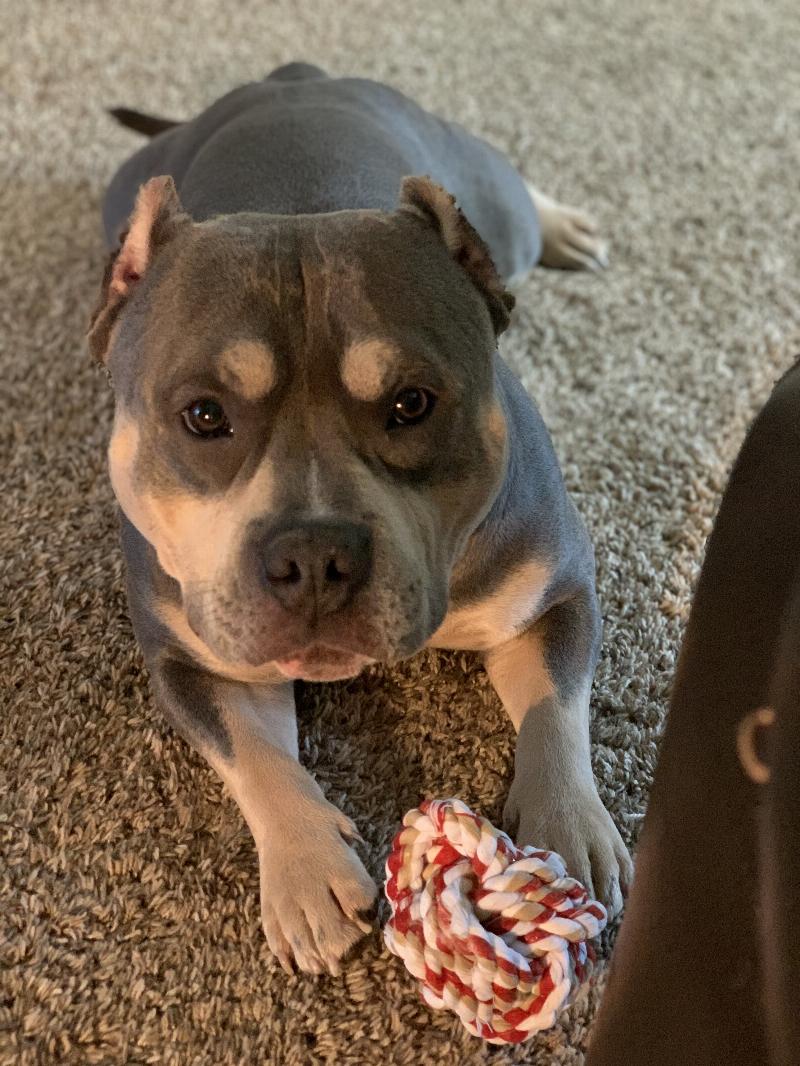 Wickerdoo and his rope ball. He loves his ball. Those are his favorite toys to play with. Silly pup goes crazy over this thing.