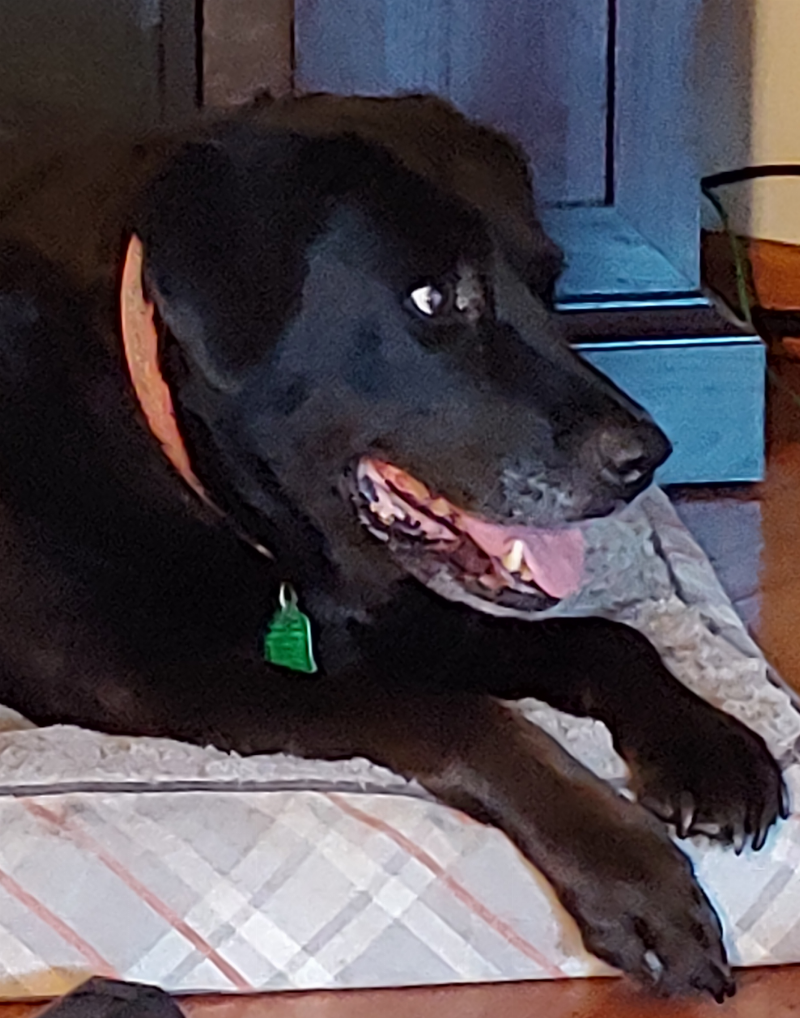 Marley laying on her bed relaxing. Marley stays by my side all the time. She loves people. She is my protector if need be. Mostly she is my companion when I need her. I really love this companion of mine.
