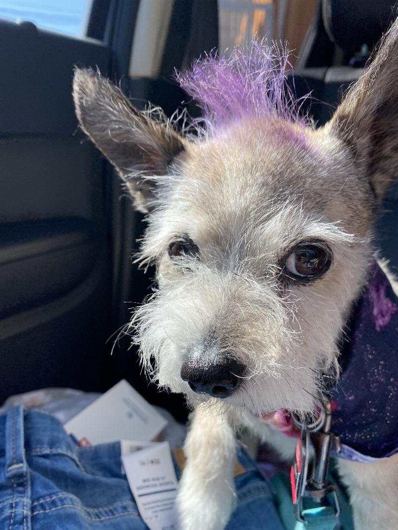 Right after the groomer. They loved he so much, they colored her Mohawk. She wasn’t happy with me but she looked adorable.