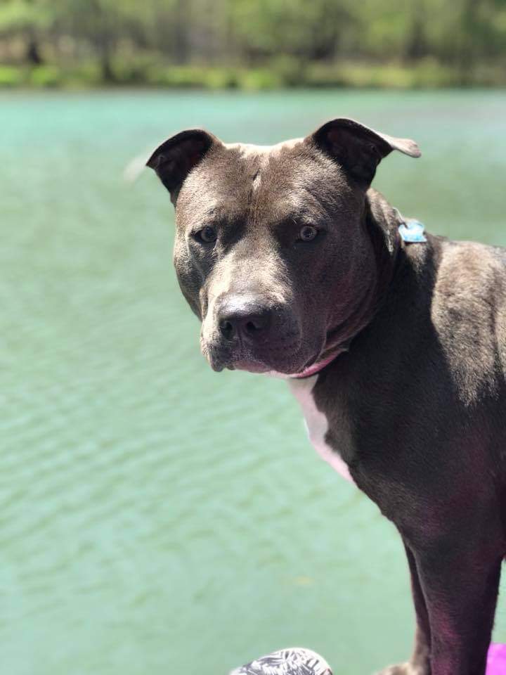 This is a photo of my boo bear. We went out on the lake. Everyone couldn’t wait to play fetch with her!