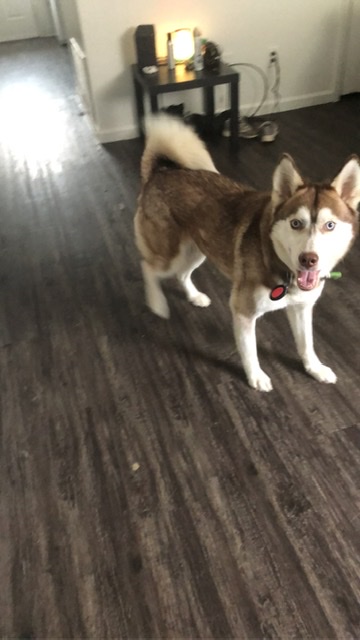 She’s very good at sensing people’s emotions and helps me everything I have an episode for all of my mental health issues. She will also go out if her way to make everyone smile just by acting goofy. She’s overall the best dog I could ask for. In this picture I caught her in a moment of her being herself.