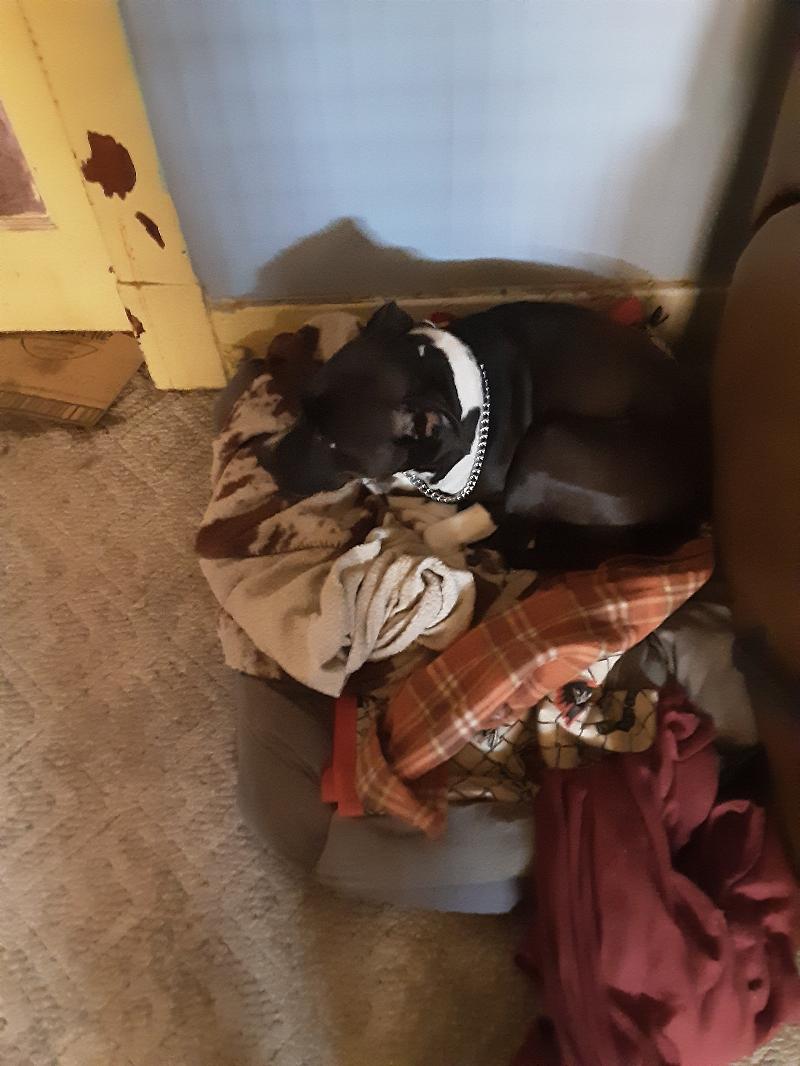 Pebbles was relaxing after a hard day at work and then playing with her baby sister for a reward of a good day at work. She loves to work.