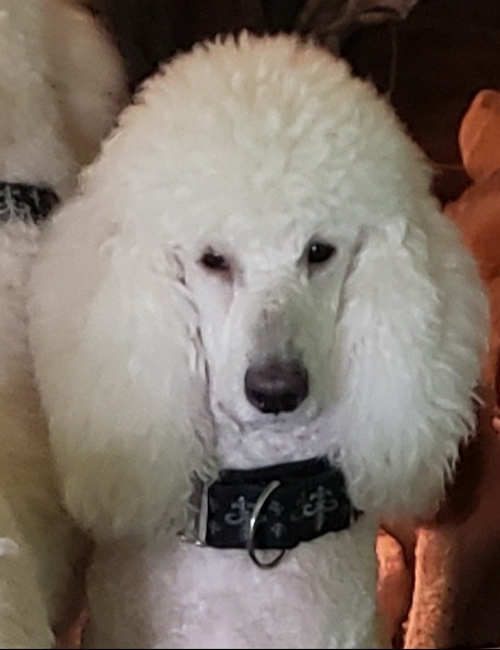 Flash is a really laid back poodle and has the best head tilt in town. He helps me stand up, from a kneeling or sitting position, he will stand next to me so I can place my hand on his shoulder and push off, so I can stand up. He also watches football with me.