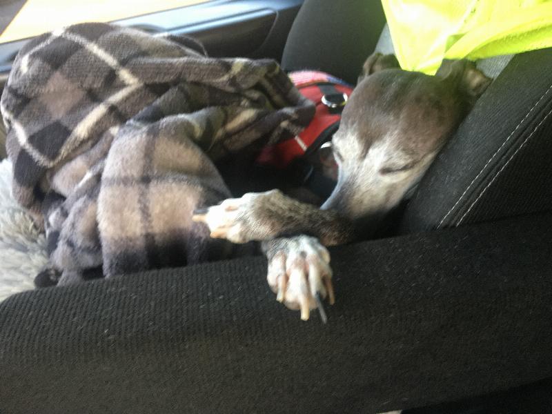 Toby loves to go in the big truck with me. He sleeps in the passenger seat, watching the traffic and waits for a treat. At night he snuggles up at the bottom of the bunk