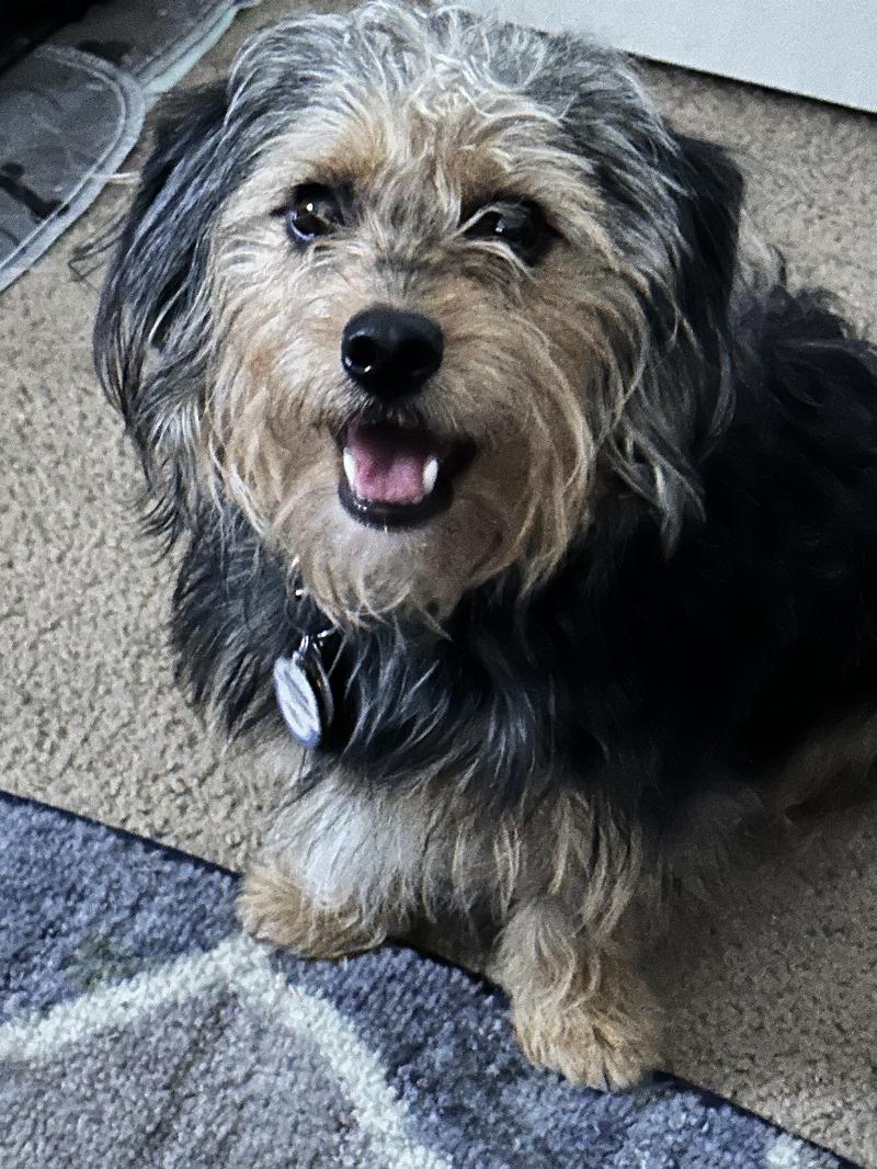 He is a beagleyorkshire terrier mix with black,tan,and white who likes to play ball. he loves to take everything that don’t belong to him.