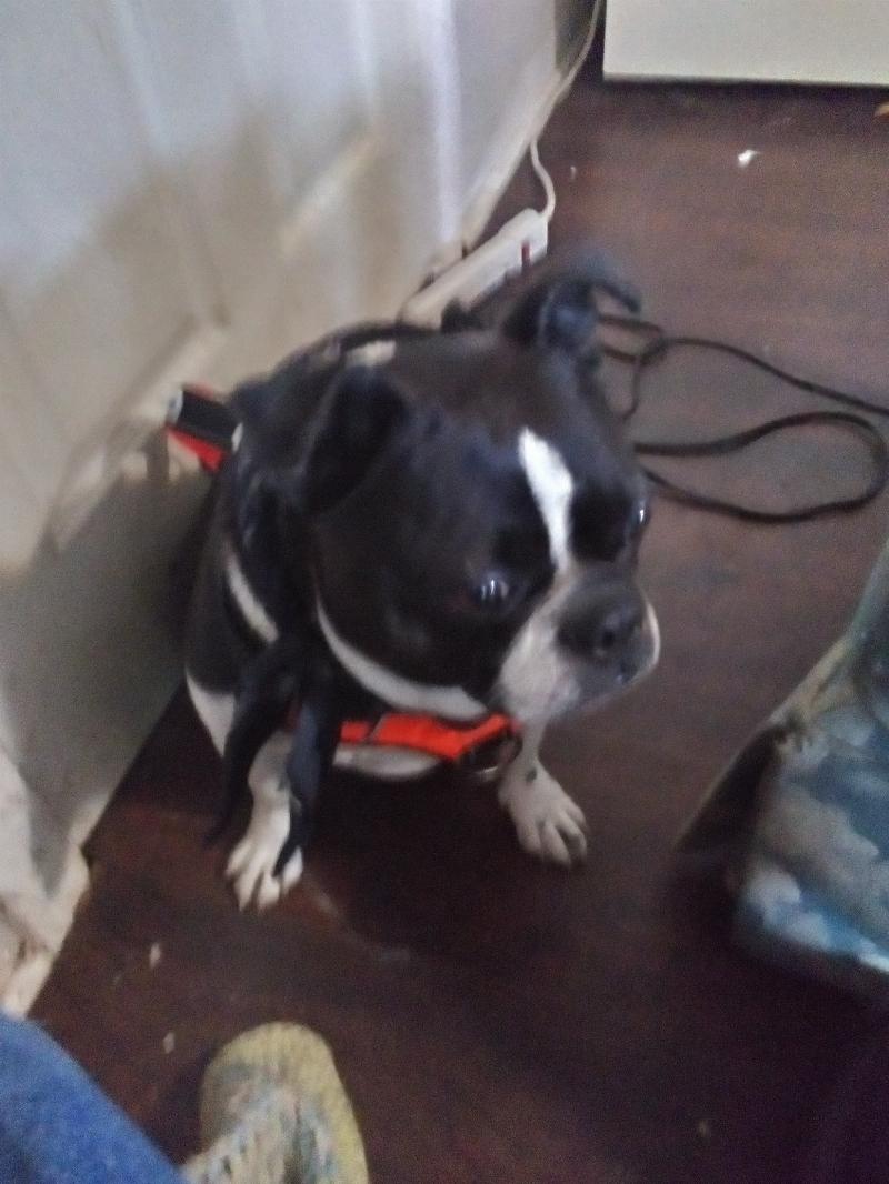 Breed: Boston terrier.