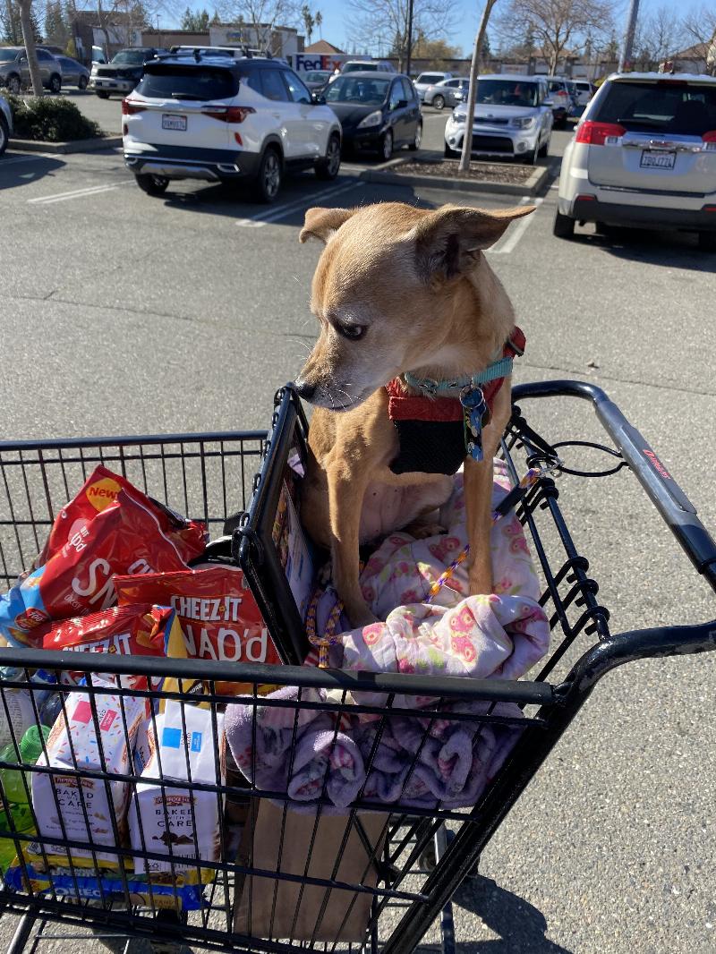 Out shopping with grandmama while waiting to go get my Mommy from human school.I got a bag of treats for doing so good in all the stores we went to.it’s so fun to shop.