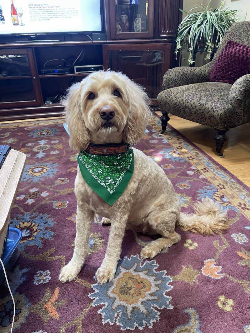 Paddington is a smart sweet Australian Labradoodle. He spends almost every minute of the day with his dad. He guides his dad to seated position when he senses he is about to have an attack keeping him from falling.