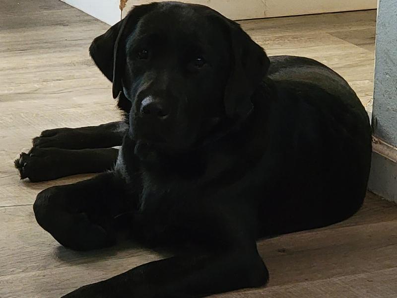 Penelope is a black lab who is my service animal to assist me with mobility as I am in a wheelchair. she is also in training to work with me as a therapy dog in my counseling practice.