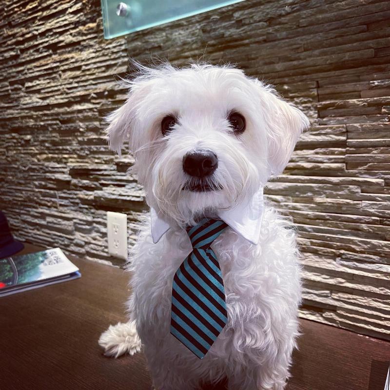 This is Pepe looking really professional to be at work giving love and making sure everyone feels safe. He loves People and respects boundaries.
