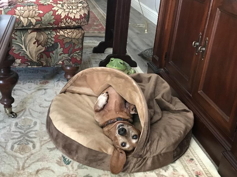 Bamboo loves his bed especially when it’s morning coffee time. He has been such a great companion after my husband passed away and keeps me laughing. Great therapy.