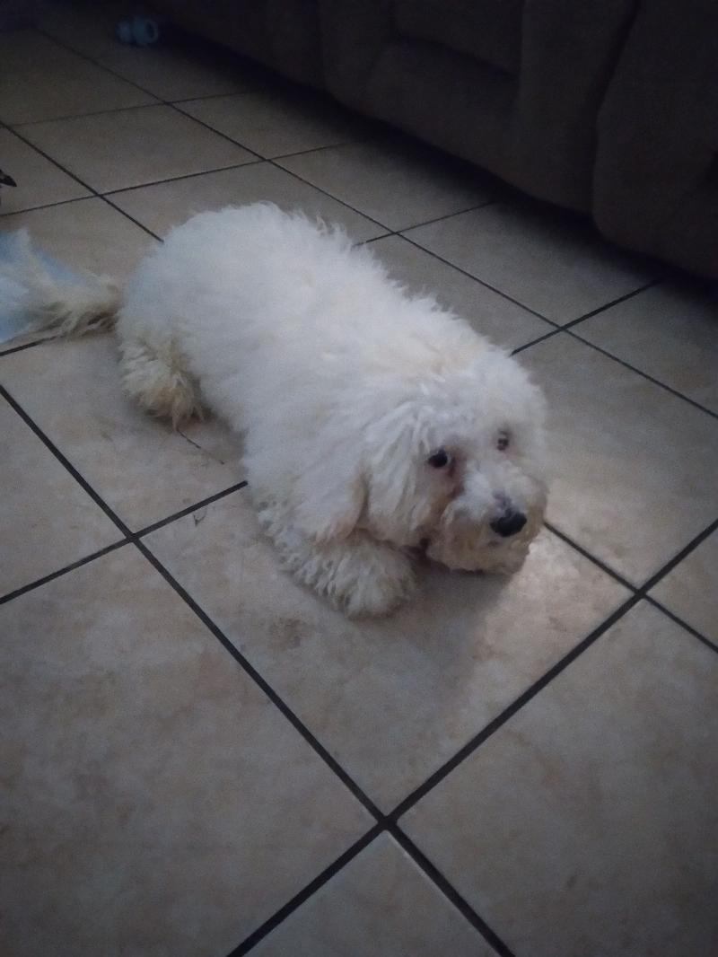 Our Baby we got her when she was a Puppy. Now getting bigger everyday. So active and white as snow. Always happy to see people.