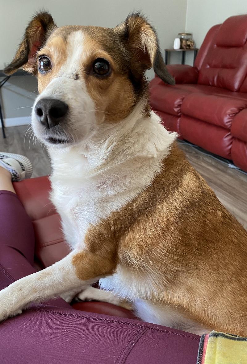 Pup pup sitting in her favorite place, which is always by me. She’s an excellent dog who has saved me twice when I’m in medical trouble. She’s my pint size hero!