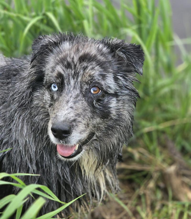 Rhu after a swim in the river. She absolutely loves the water and will swim until she is told to come out! Much deserved after a hot summer day!