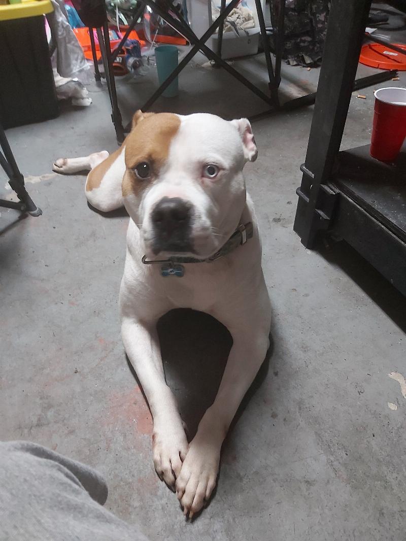 Rubble laying down. Hes such a good boy. He is very well behaved. He sits there and watches me to make sure im ok. I love him so much