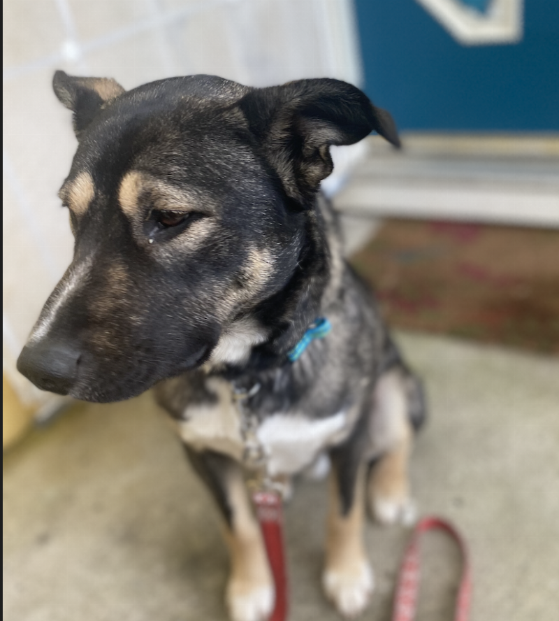 LEGEND IS A GERMAN SHEPHERD MIX. HE WAS BORN IN FEBRUARY 2021.
