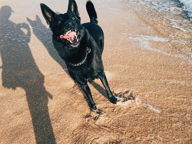 Service Dog River Roux on the island of Oahu, Hawaii, USA. River Roux is an expeditionary service dog for Melanie Boling and Boling Expeditionary Research.