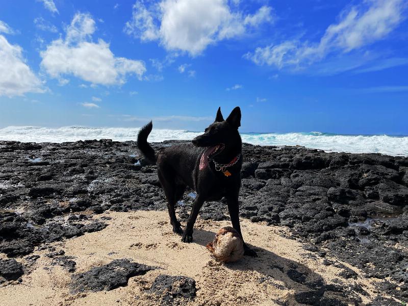 Service Dog River Roux at Sandy Beach, Honolulu, Hawaii.