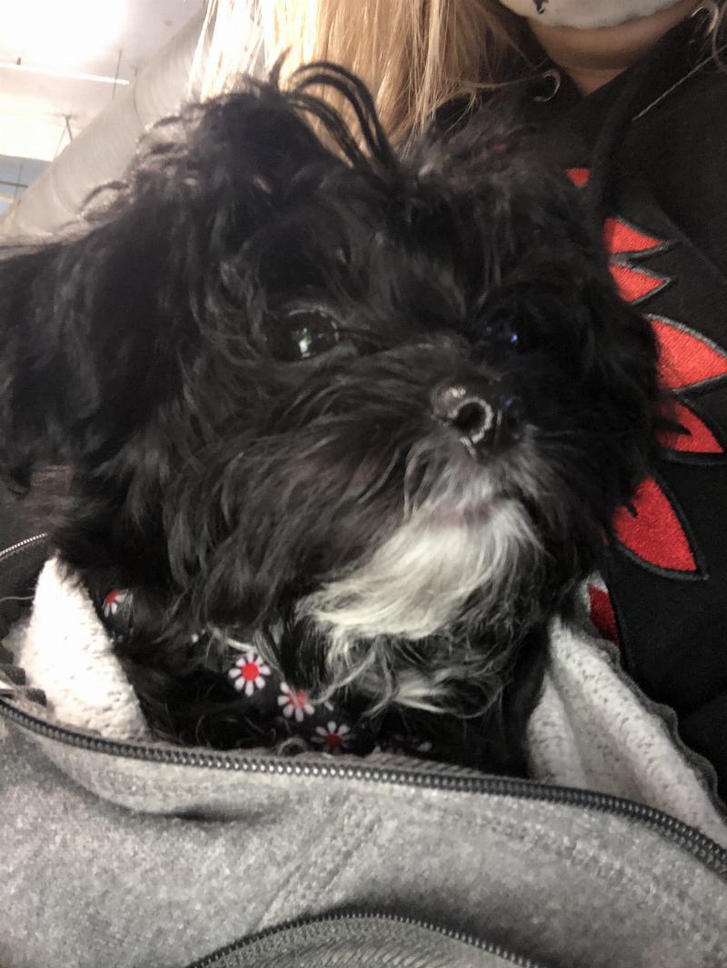 My son plays hockey and I am very anxious and panicky when he plays. She goes with me and cuddles on my lap and watches the game. It is very calming for me to have her there.