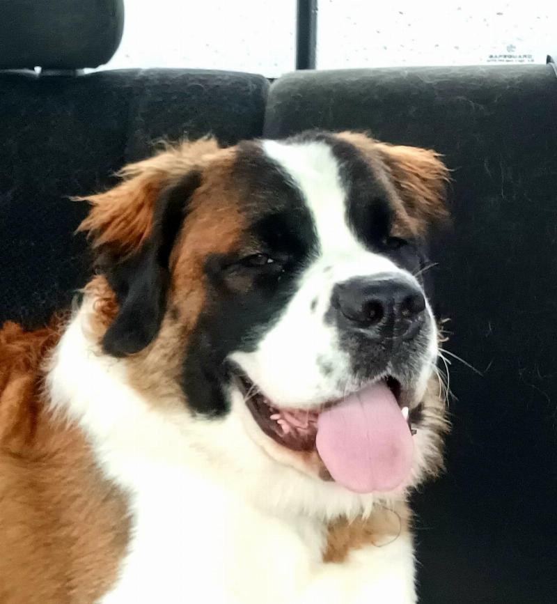 BIG BOY is a St Bernard. He loves his popcorn and bones. He helps mom w her ptsd and anxiety attacks. Staying clothes and making sure everything is okay.