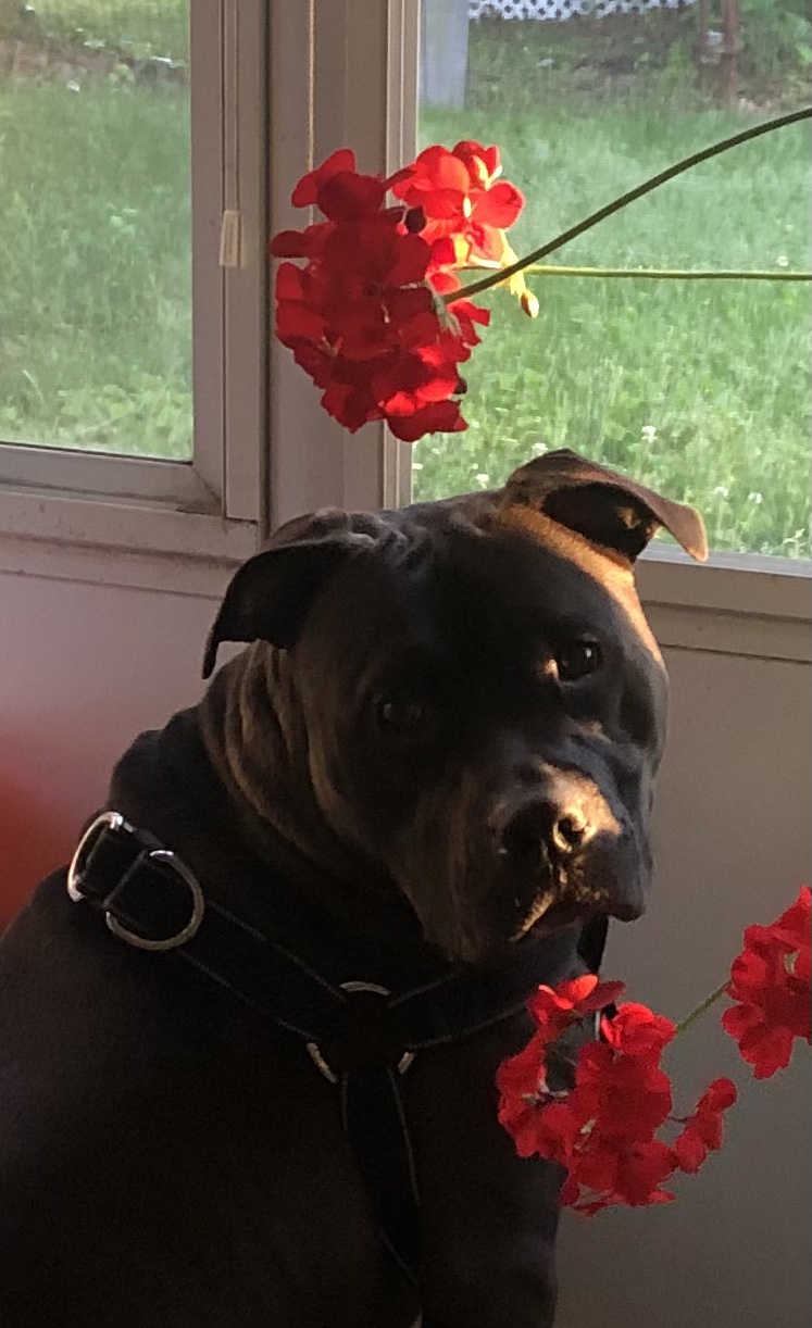 Syxx was on the sun porch smelling the flowers. He was being so gentle and sweet. When I asked him to look up he did and it’s the perfect picture of him being the handsome boy that he is.