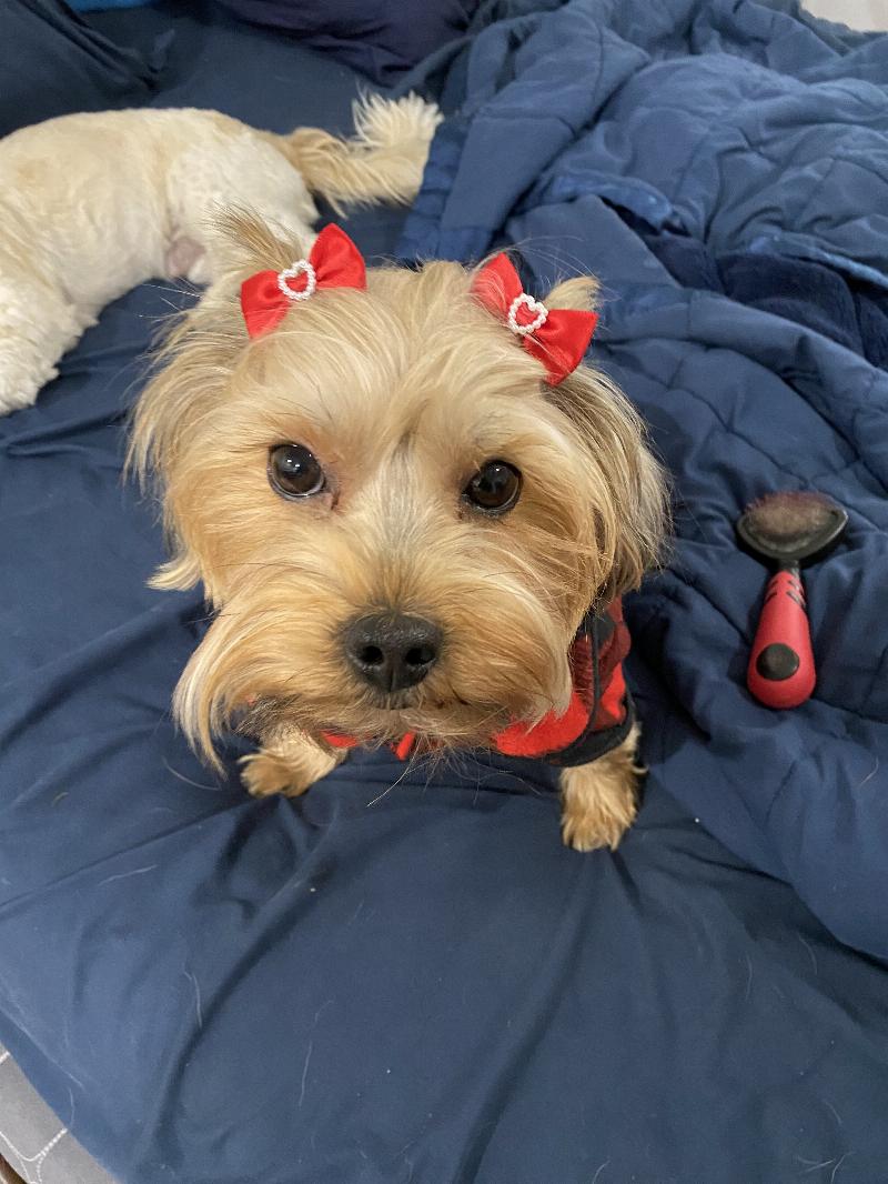 Snickers loves to get dressed. Her warm flannel pajamas are her favorite when it’s cold outside. She gets excited to go for car rides.
