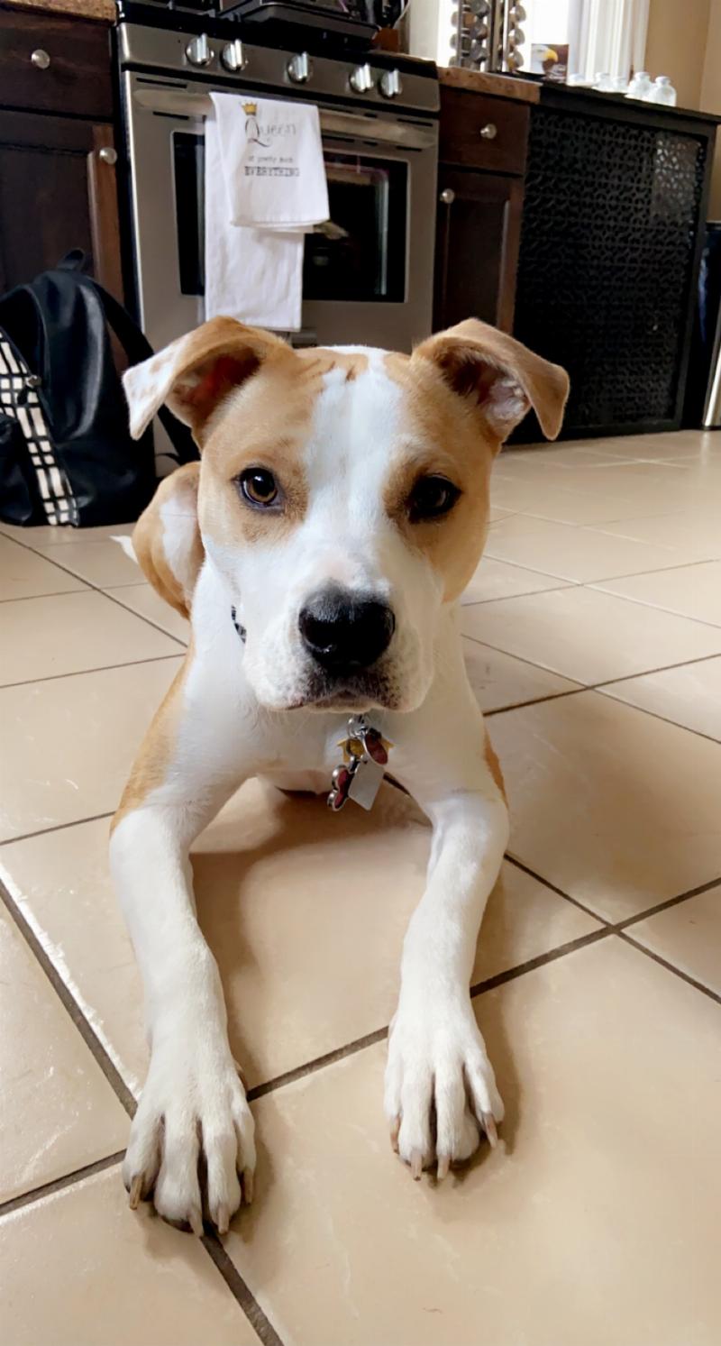 This is an updated photo of Sōl since her last photo was taken when she was a puppy. This photo needed to be updated for her ID card so she can be properly identified.