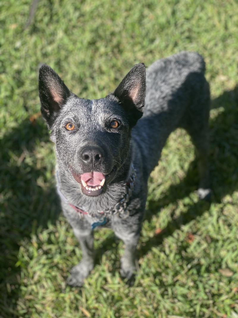 Most recent photograph I have of stitch. Needed to update and purchase his new card. He is 1 1/2 blue heeler cattle dog. Fixed