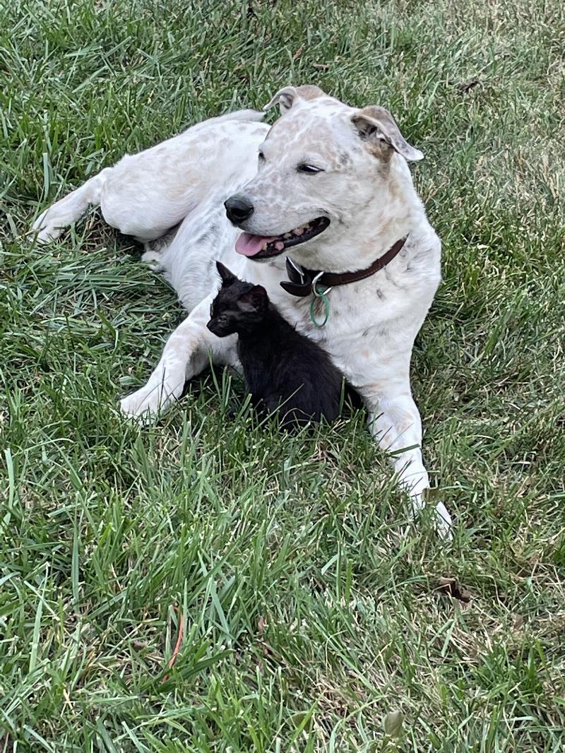 I took a picture of Duncan taking care of a stray cat, he is the sweetest dog ever. He takes care of me and other’s when he sensed a good personality.