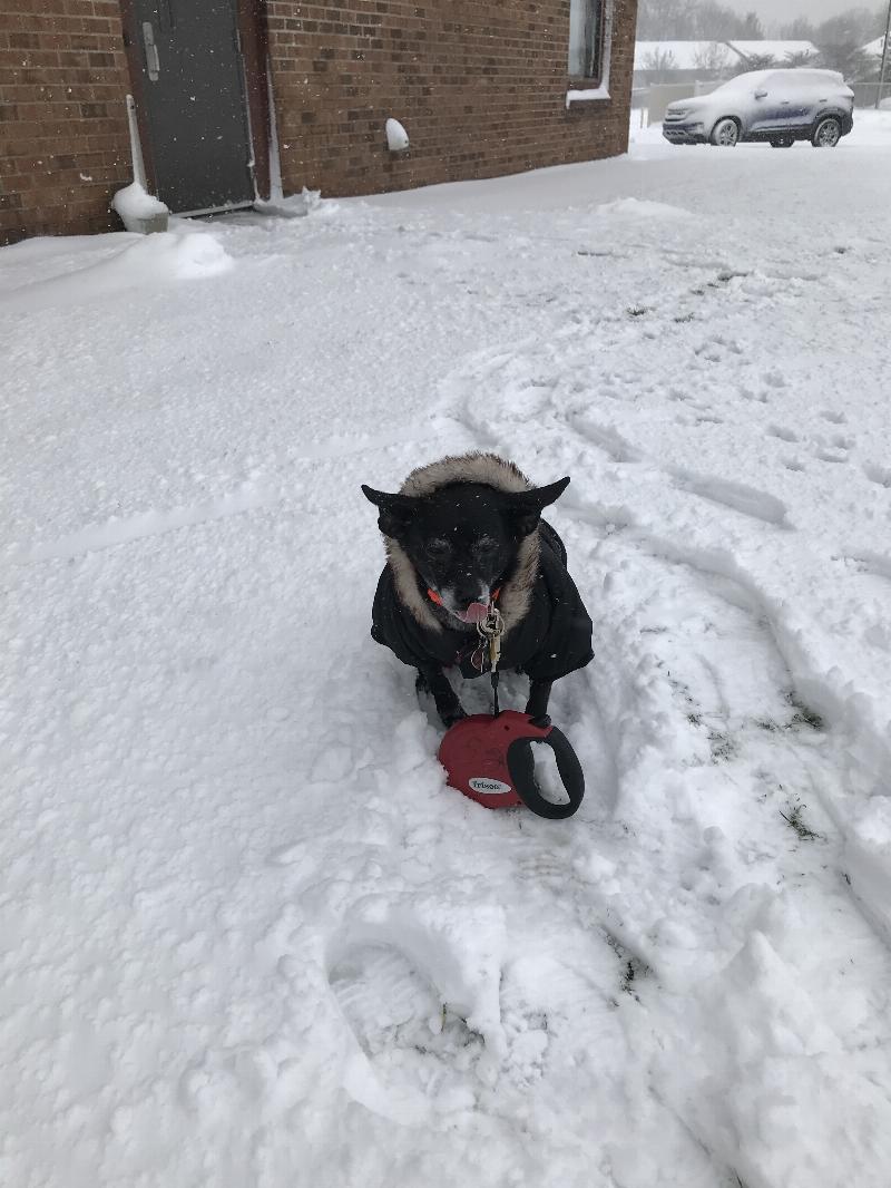 It’s charcoals first time in the snow with his new Parka and he was catching snowflakes on his tongue lol