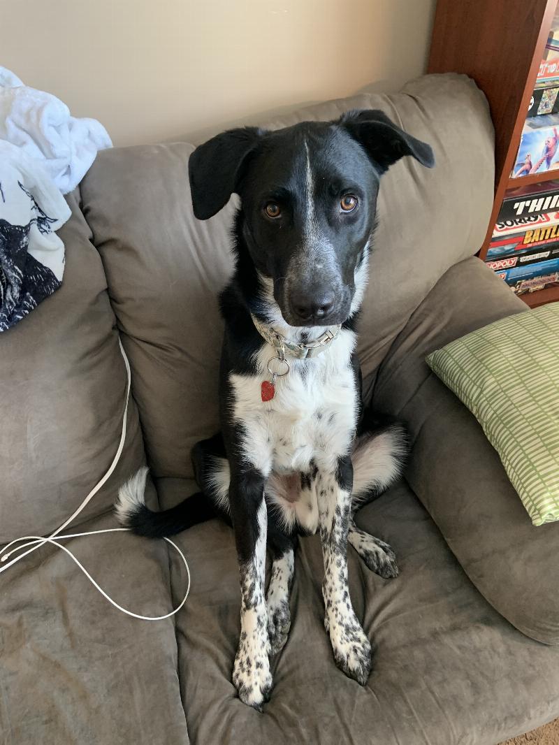 Goose loves to steal peoples spot on the couch as they sit down. He also has a very different way of sitting, partly do to being part German Shepard.
