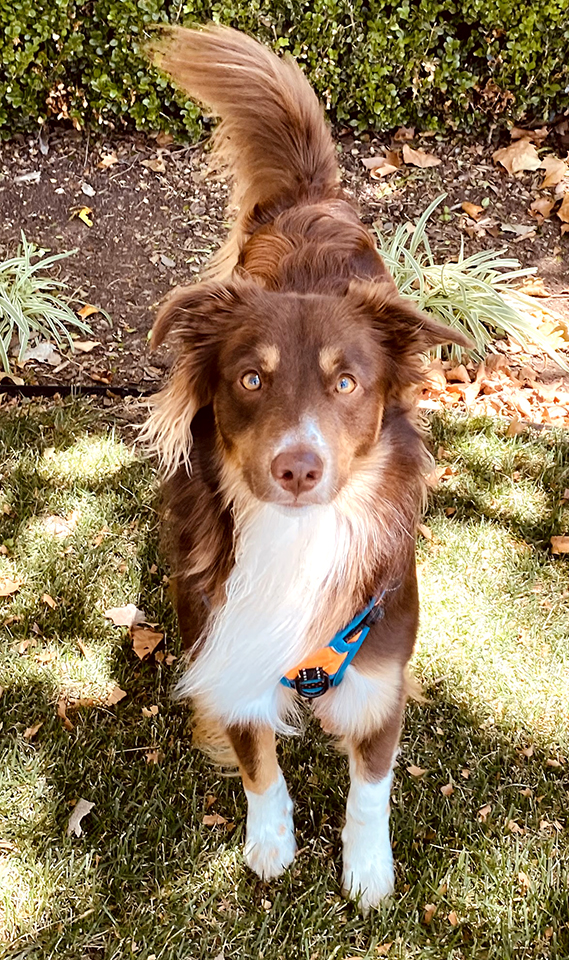 This is Dash sitting in the front yard at my home in Vallejo. He is 18 months old. Dash is very smart and helps me remember to take medications I need for Cancer.