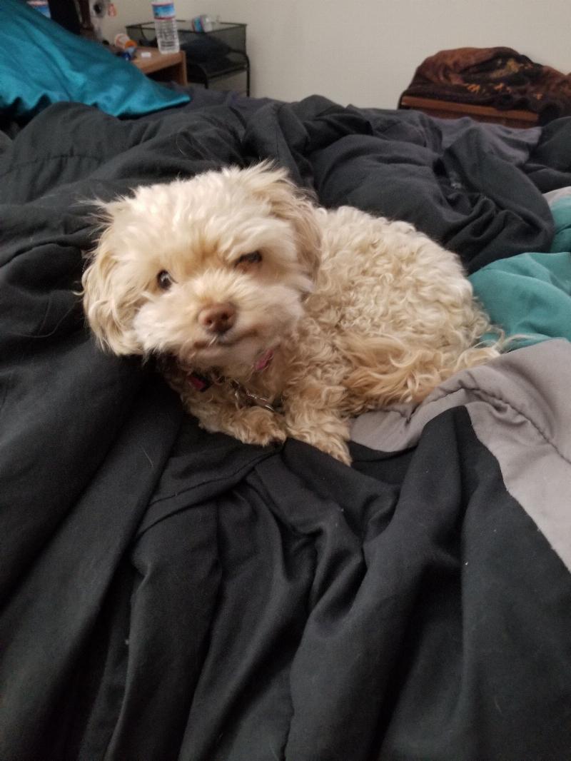 this was my first dog Tafey since i lost my daughter. she is a tanish multipoo. she weighs about 7 pounds. she is house trained. she has brought so my joy to me and also has given me a purpose. she also looks up to me like her mother. she is very friendly and cuddly and loves to follow me around as well. very theraputic for me. she loves treats. both my dogs puts a smile on my face everyday. i wouldn’t know what to do if i did not have her or my other dog Ceasar.