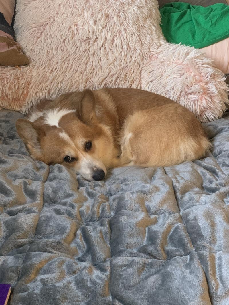 Relaxing in her favorite spot on my bed while I study! She’s a great stress release during these times. Couldn’t ask for a better pup!